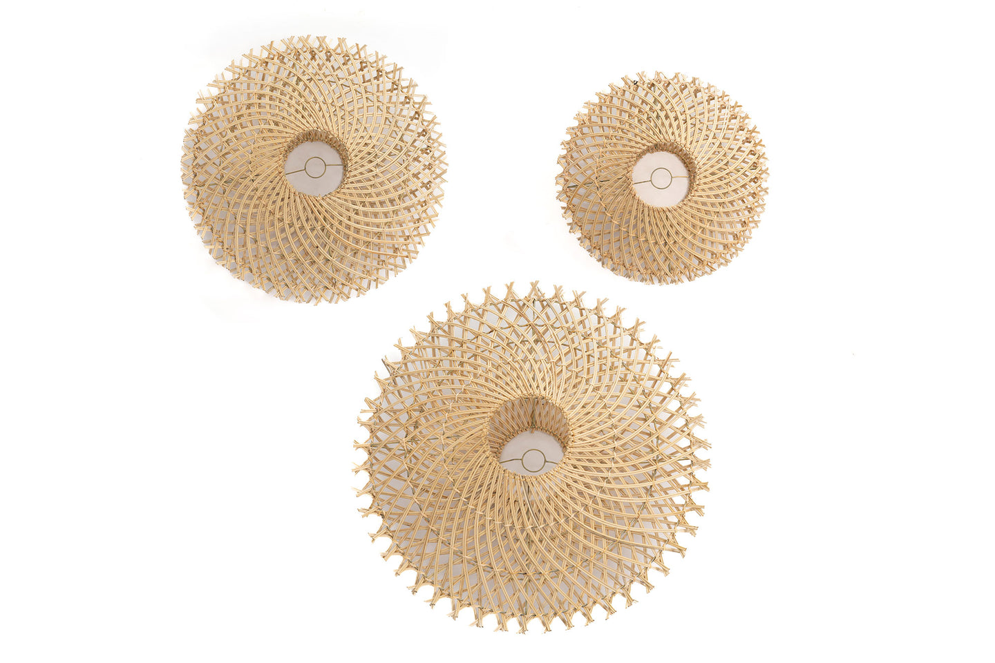 Lámpara de pared 40cm aditi. Lámpara con estructura en aluminio, tejida en vara de rattan.