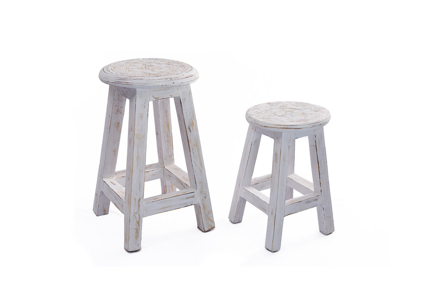 Butaco tallado d29 x a50 blc albertina. Elaborado en madera tallada.