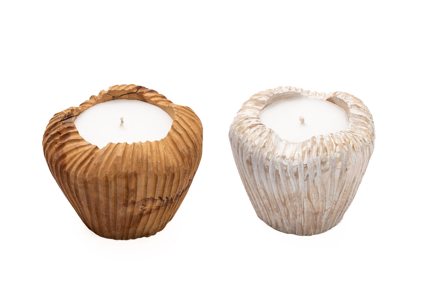 Vela d25xa18 nat amata. Pieza elaborada en madera teca y parafina.
