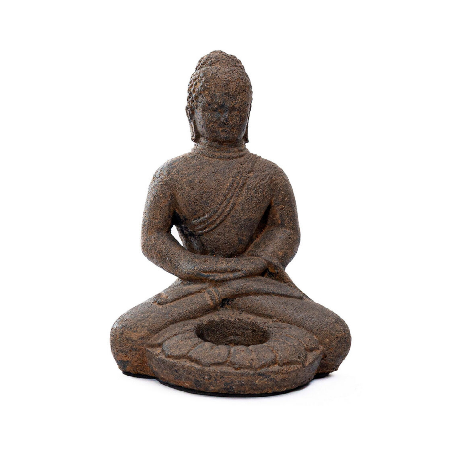 Budha 20cm con vidrioela arhat. Pieza elaborada en cemento.