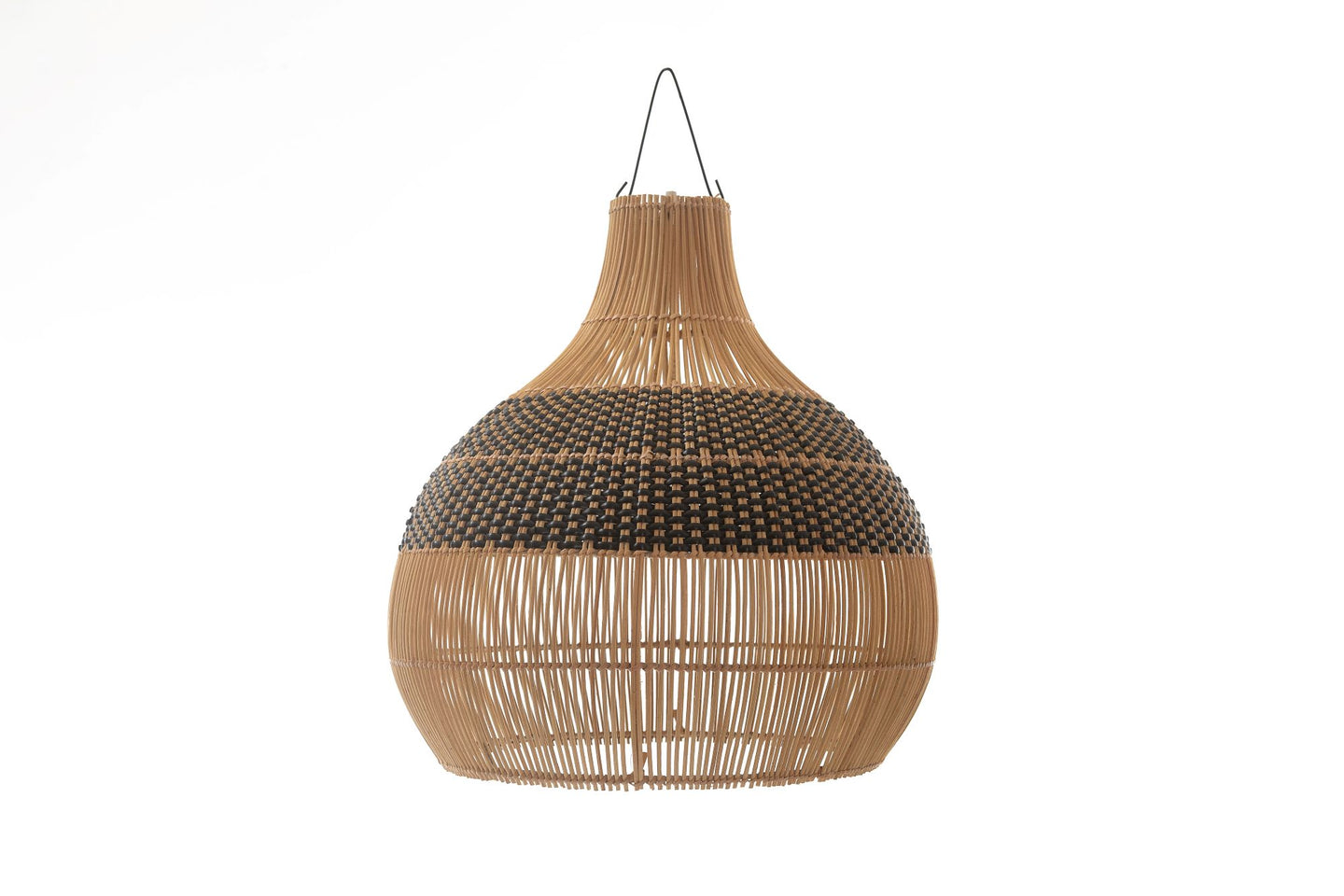 Lámpara tej resina d50xa50 ngr bantayan. Estructura en aluminio, tejido en rattan natural y rattan sintético.