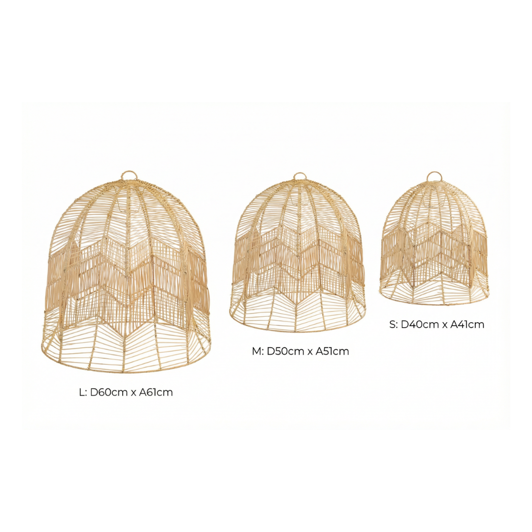 Lámpara colgante 40cm belimbing. Estructura en aluminio, tejida en cáscara de rattan.