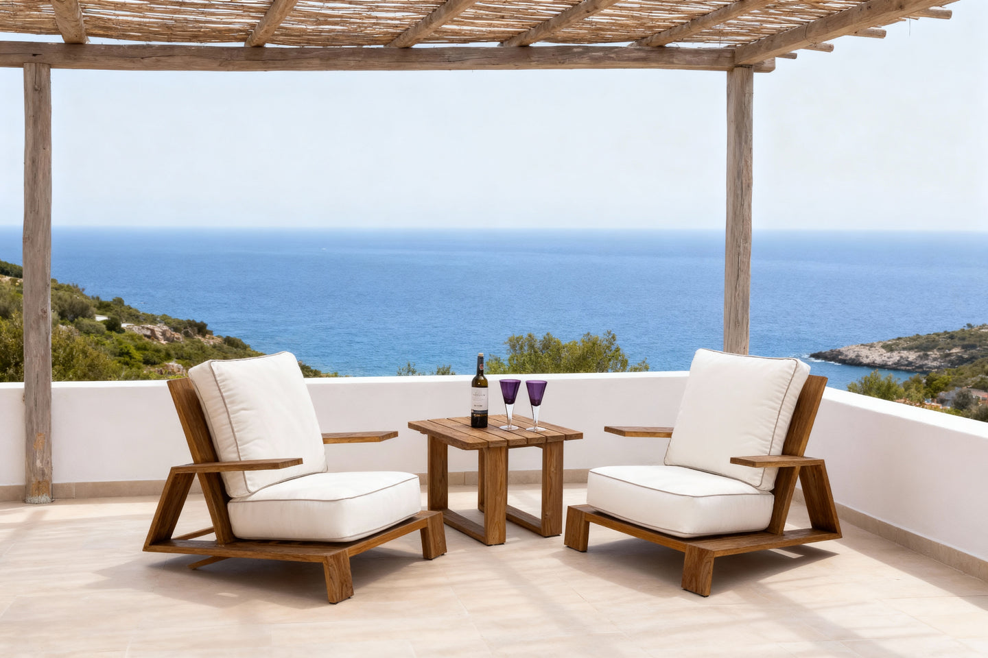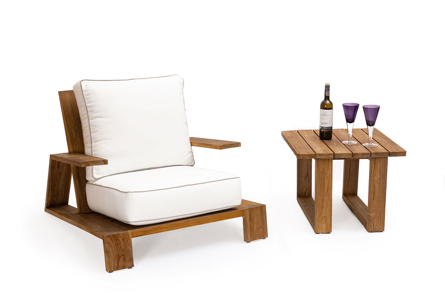Poltrona con brazos nat bellagio. Estructura elaborada en madera teca con cojínería apta para exterior. .