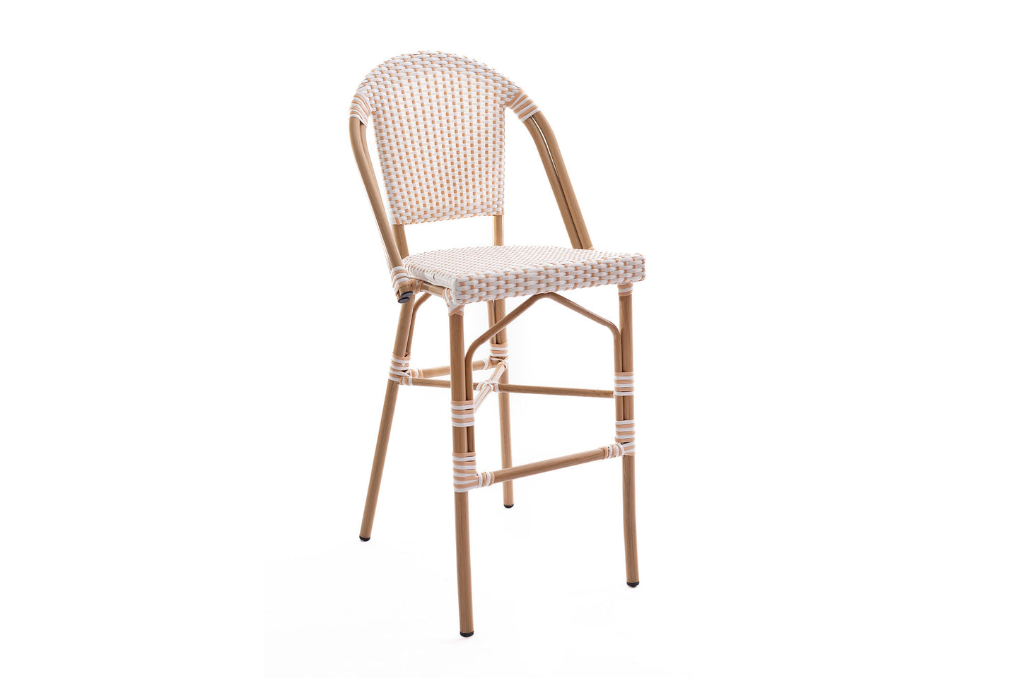 Butaco sin brazos blanco beige blend. Estructura en aluminio, tejido en rattan sintético.
