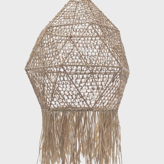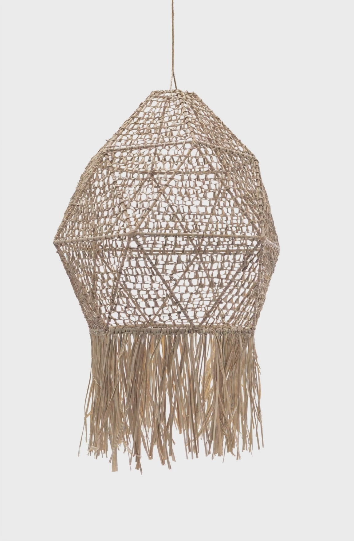 Lámpara colgante red branca. Estructura en aluminio, tejido en rafia.