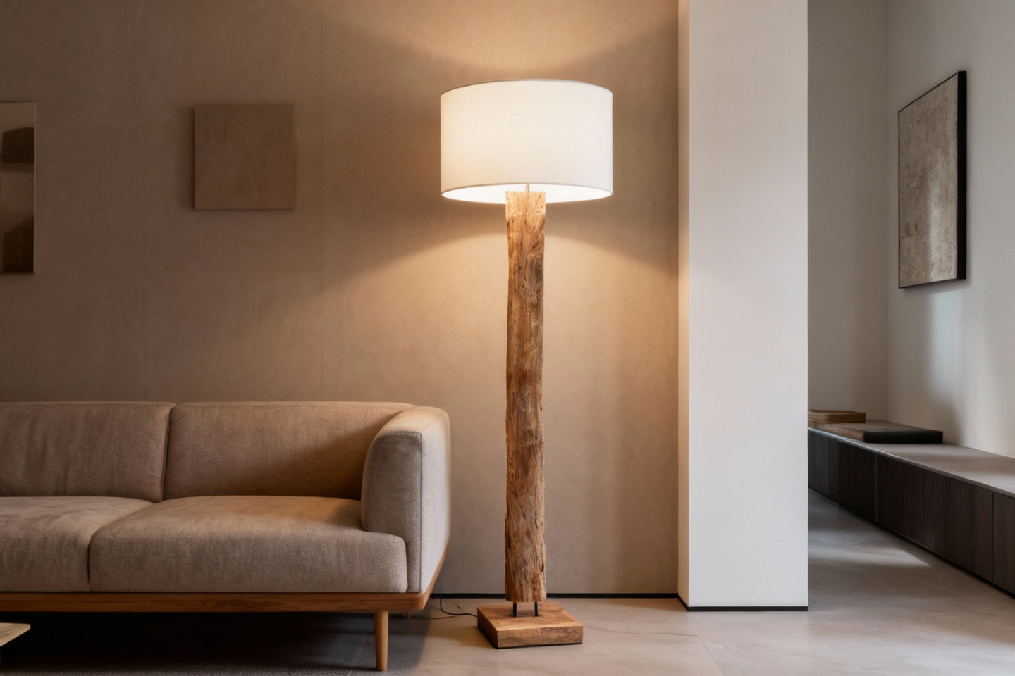 Lámpara de piso a160 bukit. Elaborada en madera teca.