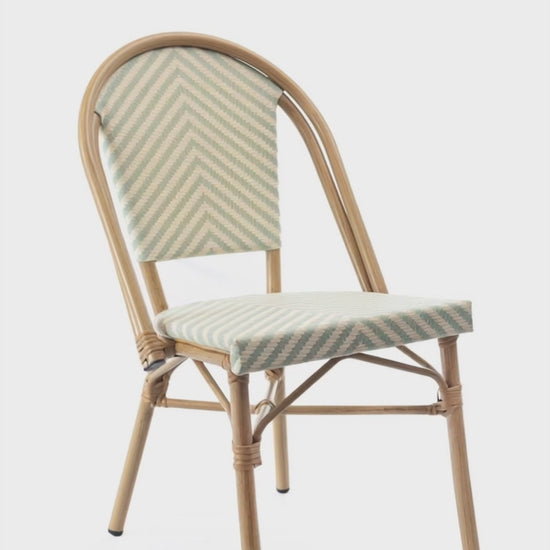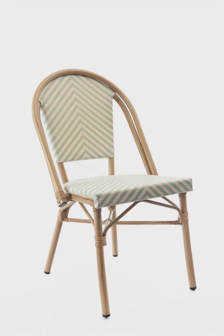 Silla comedor sin brazos bg/ver civeta. Estructura en aluminio, espaldar y sentadero elaborado en textileno.