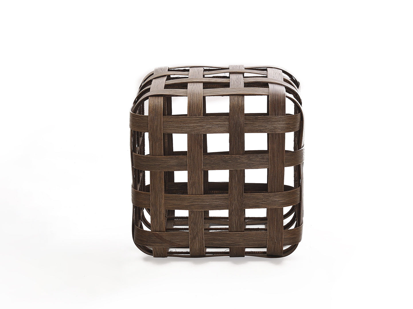 Butaco cuadrado std cobaya. Estructura en hierro, tejido en cáscara de rattan.