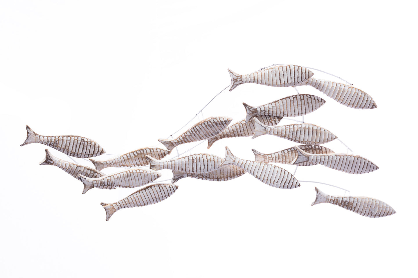 Cardumen de pescados rayas 100cm congrio. Estructura en aluminio, pescados elaborados en madera.