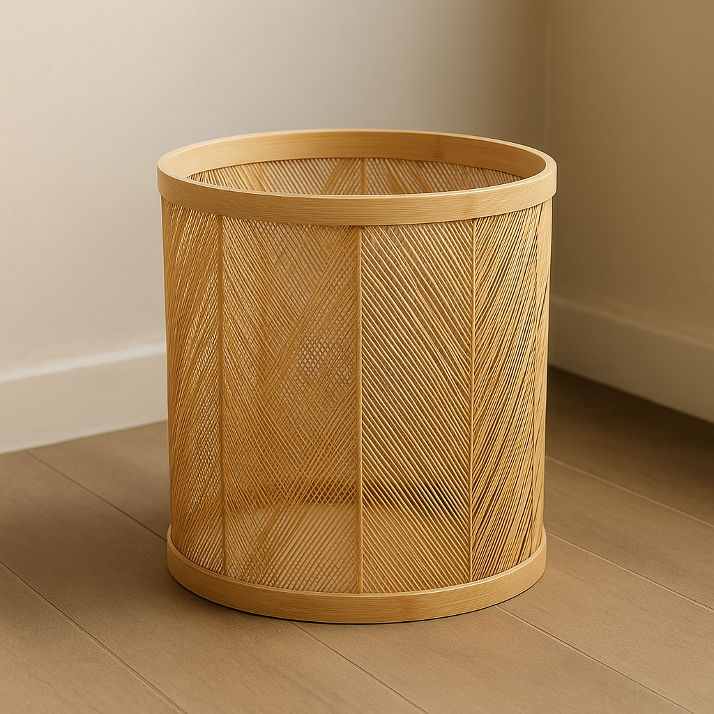 Canasto s/tapa nat peq dashi. Canasto tejido en vara de rattan con detalles en bambú.