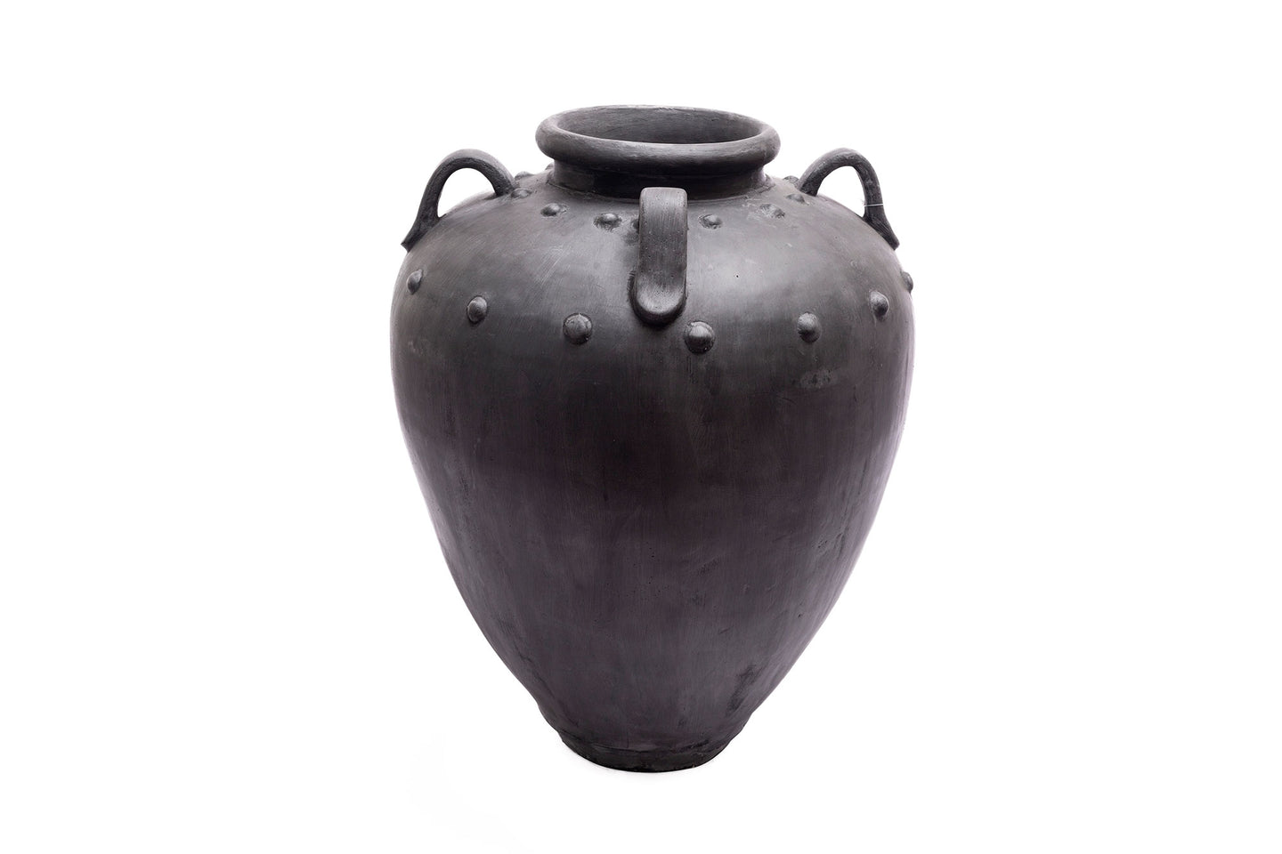 Jarrón negro c/orejas d80 x a100 dharma. Pieza elaborada en ceramica de terracota.
