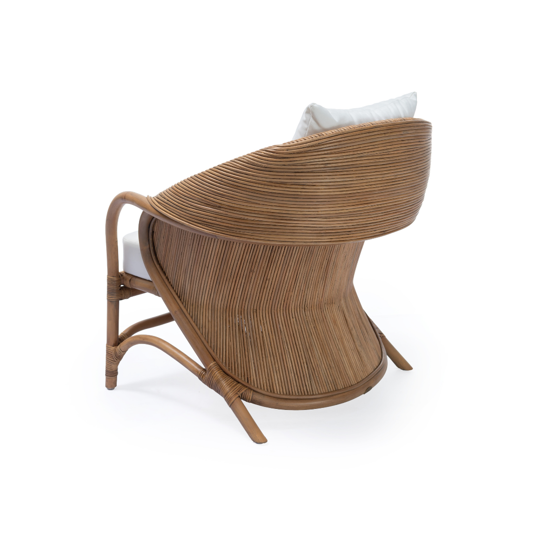 Silla ocasional color natural Eirene. Estructura y tejido en liana de rattan natural.