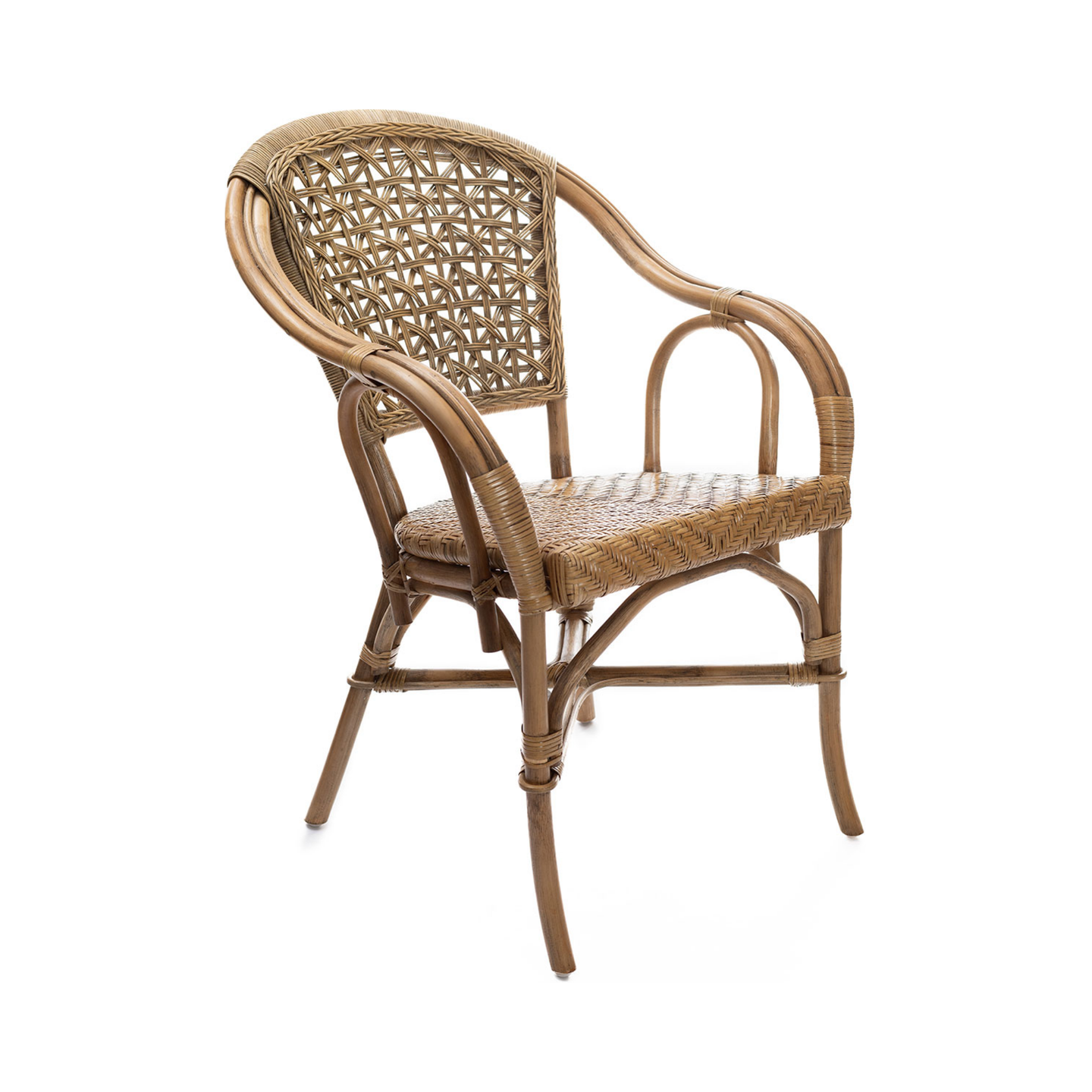 Silla comedor con brazos blc/atq ellen. Estructura en vara de rattan, tejido en cáscara de rattan. .