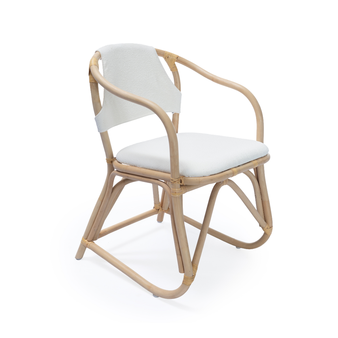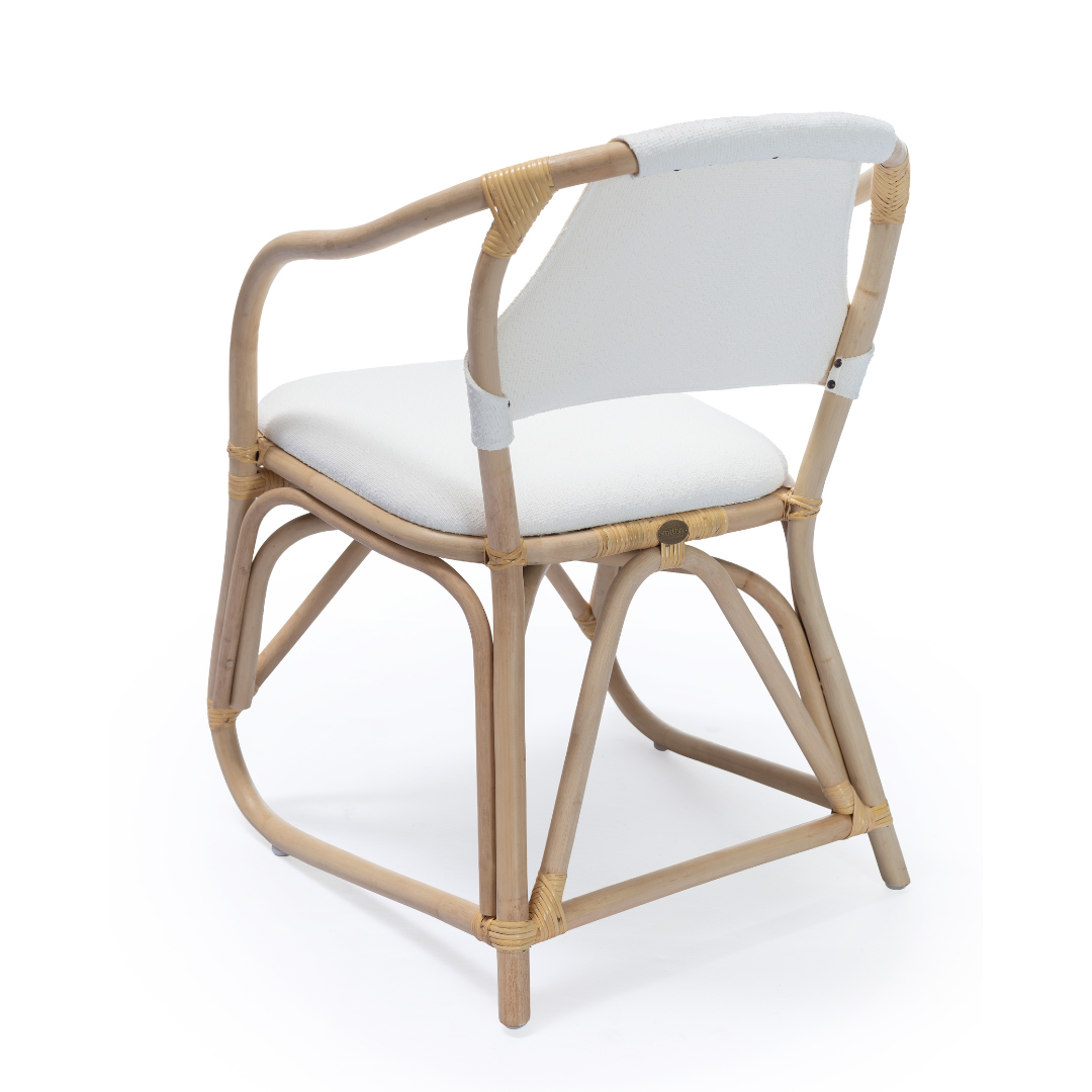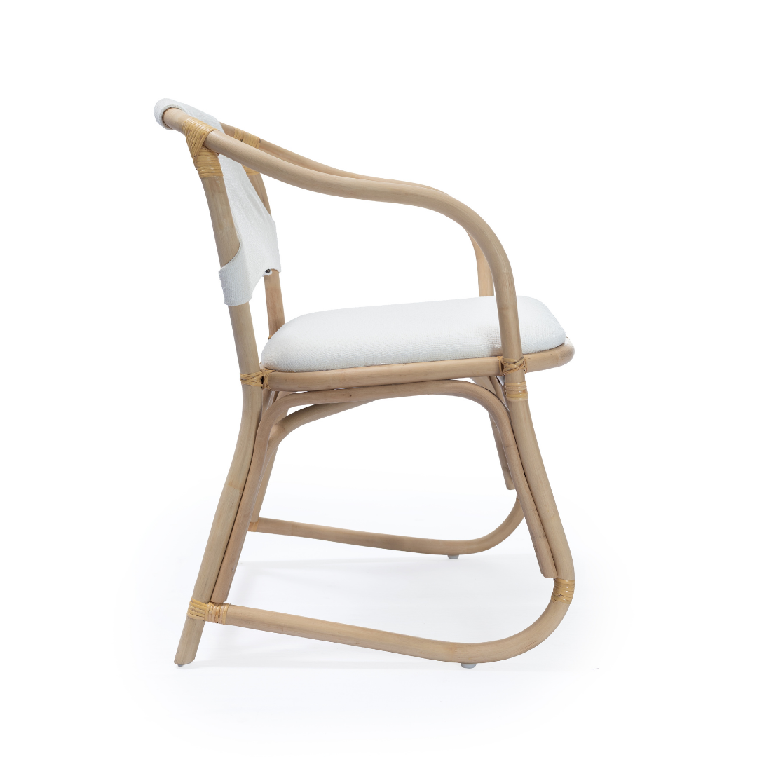 Silla comedor color natural Fedor. Estructura elaborada en vara de rattan, espaldar y sentadero en tela.