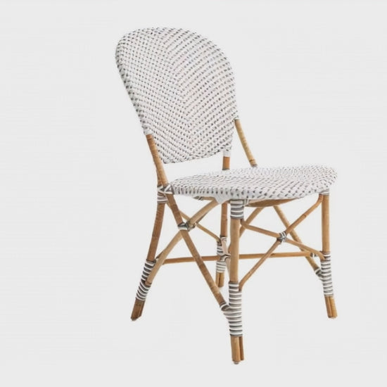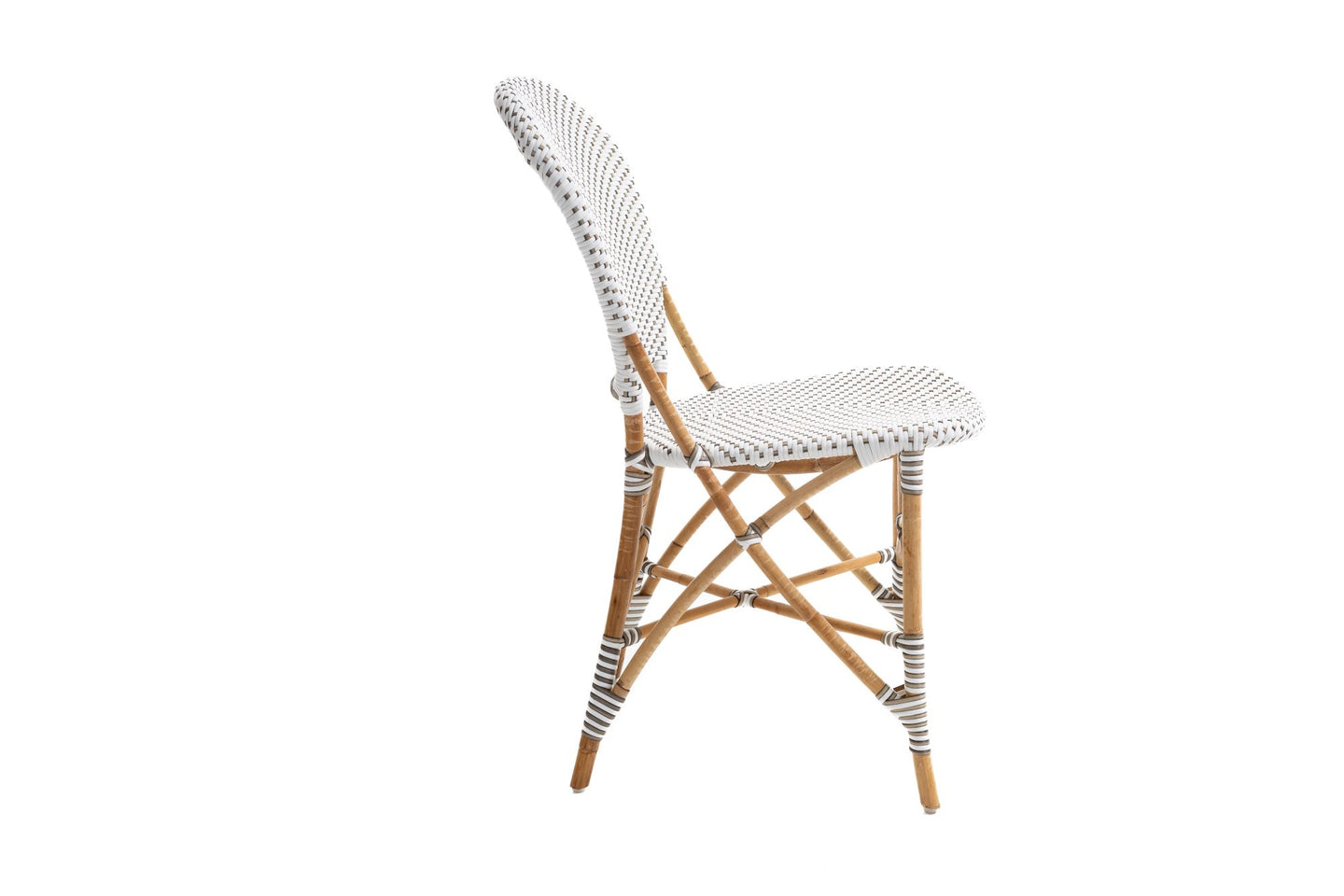 Silla comedor sin brazos b/stone gea Bistro. Estructura en vara de rattan con corteza, tejido en rattan sintético.