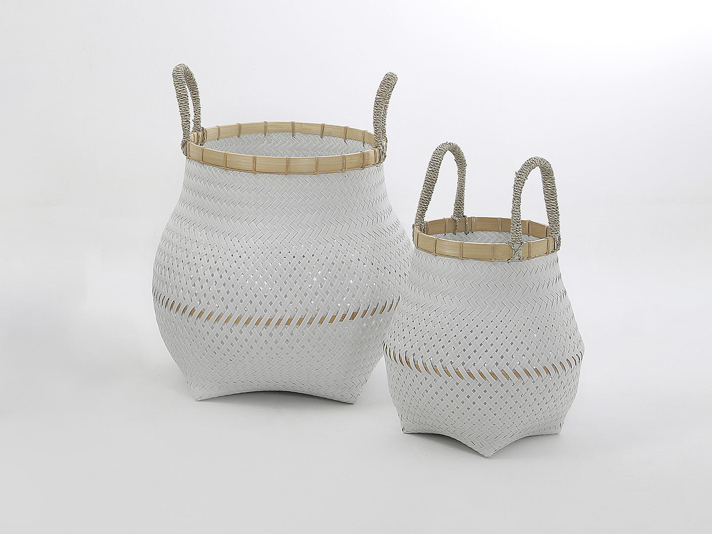 Canasto c/agarr b/nat l gerik. Tejido en rattan sintético, agarraderas en cabuya naútica con detalles en bambú.