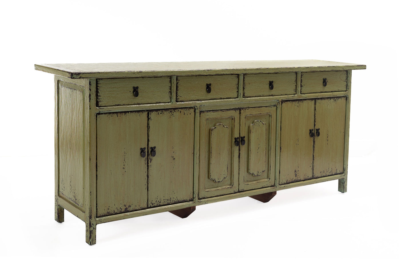 Bife chino 212x45x86 olv srbya han. Pieza elaborada en madera mindi con acabado de color envejecido. .