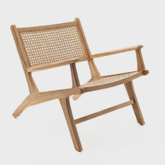 Silla ocasional con brazos nat hatha. Estructura en madera, tejido en cáscara de rattan.