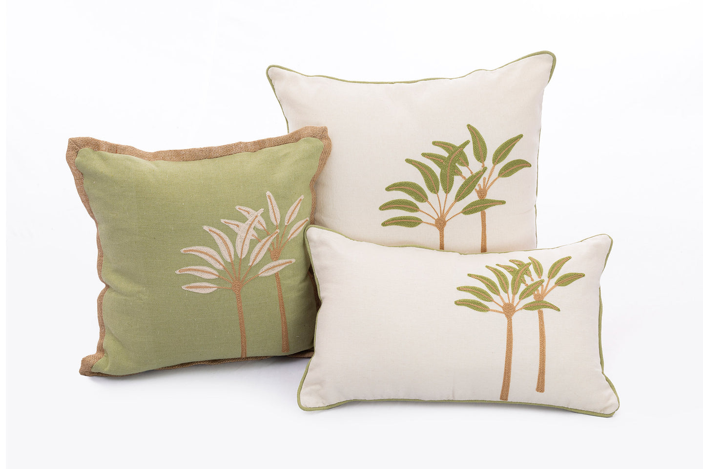 Cojín ln verde flores beige 40x40 hmya. Pieza elaborada en algodon.