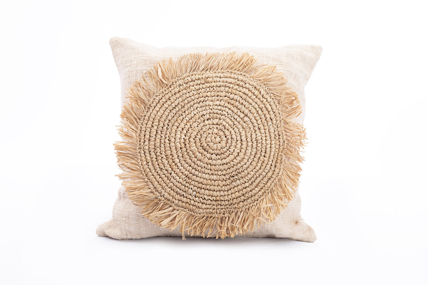 Cojín alg crd circ pel rafia 50x50 hmya. Elaborado en algodón y decorativo en rafia.