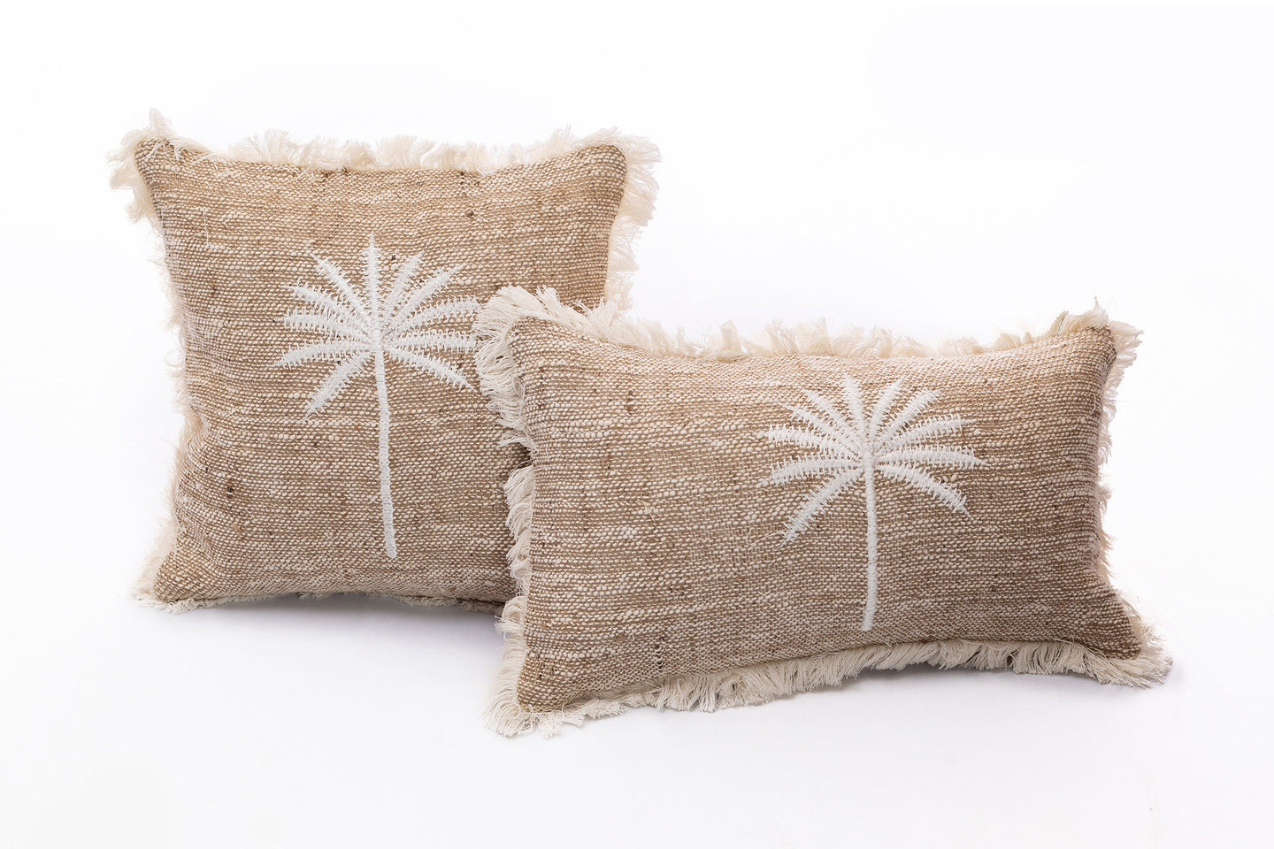 Cojín alg café palma blc pel 50x50 hmya. Pieza elaborada en algodon.