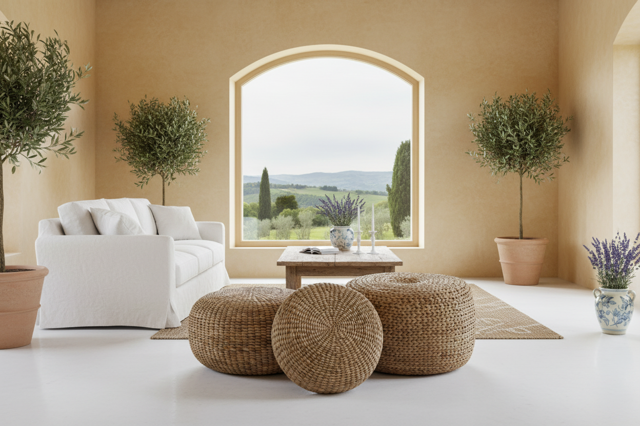 Butaco redondo seagrass d40 ilana. Butaco tejido en seagrass.