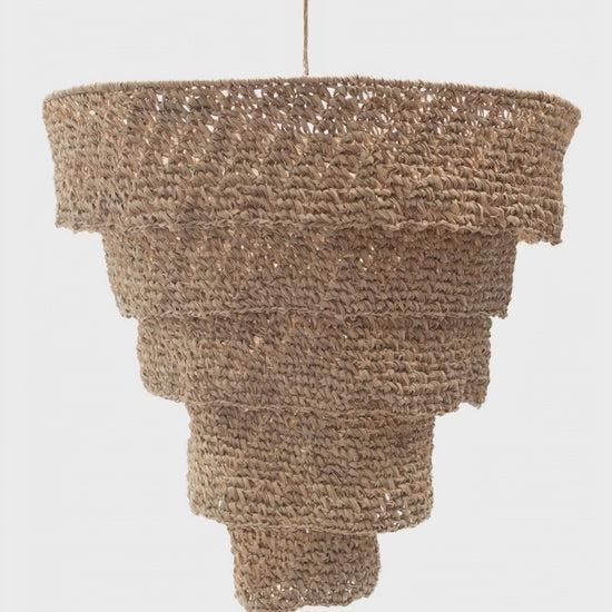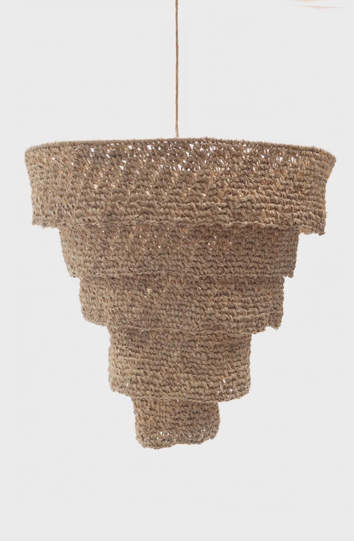 Lámpara colgante flex d64 x a64 inna. Estructura en aluminio, tejido elaborado en sisal.
