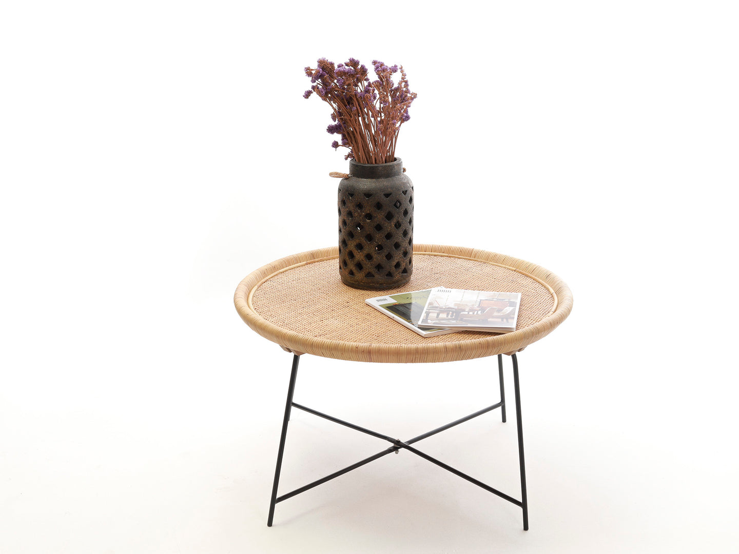 Mesa de centro natural sin vidrio irina. Estructura en hierro, tejido es cáscara de rattan. .