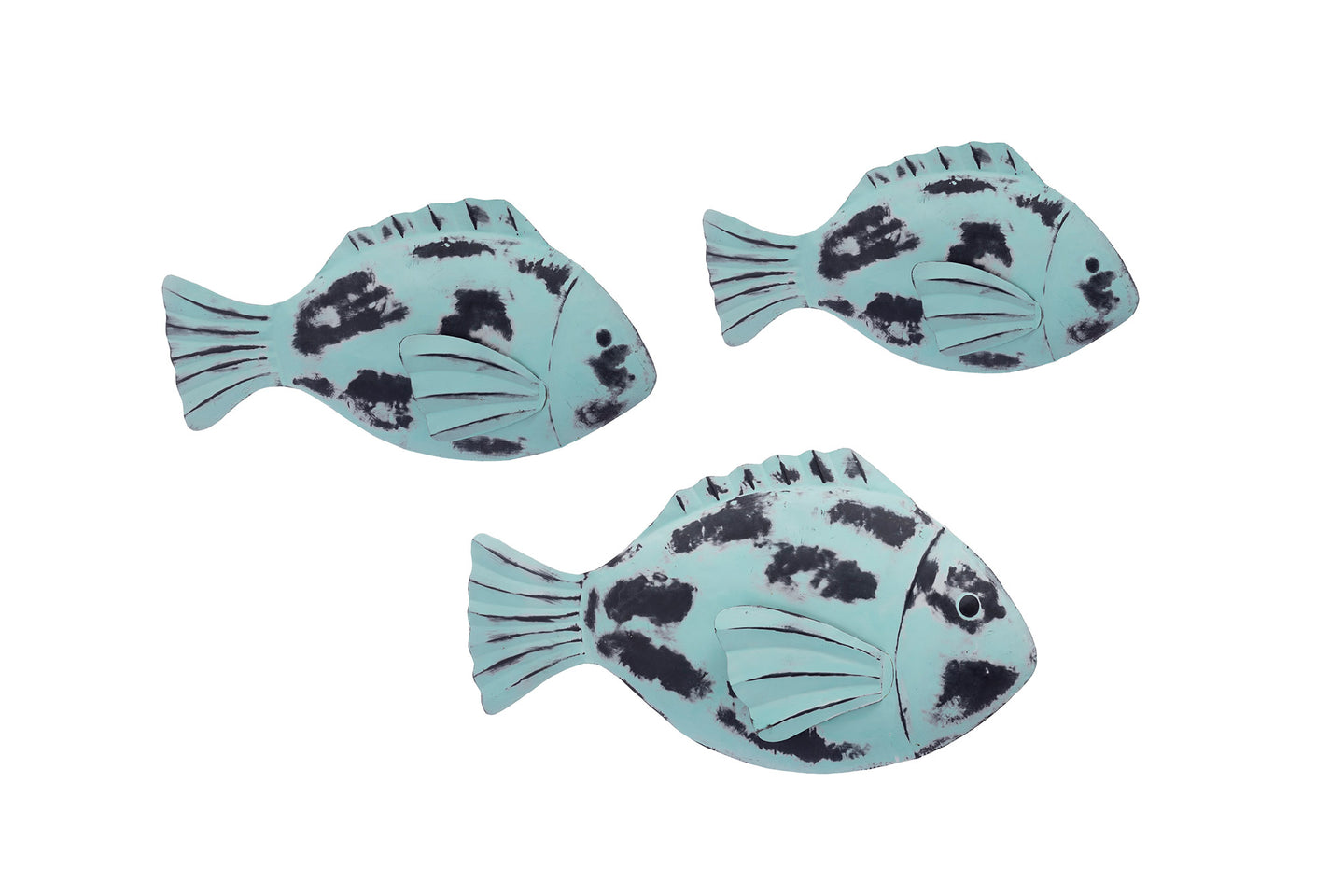 Set x 3 pescados pared aqua jantuk. Decorativo elaborado en aluminio.