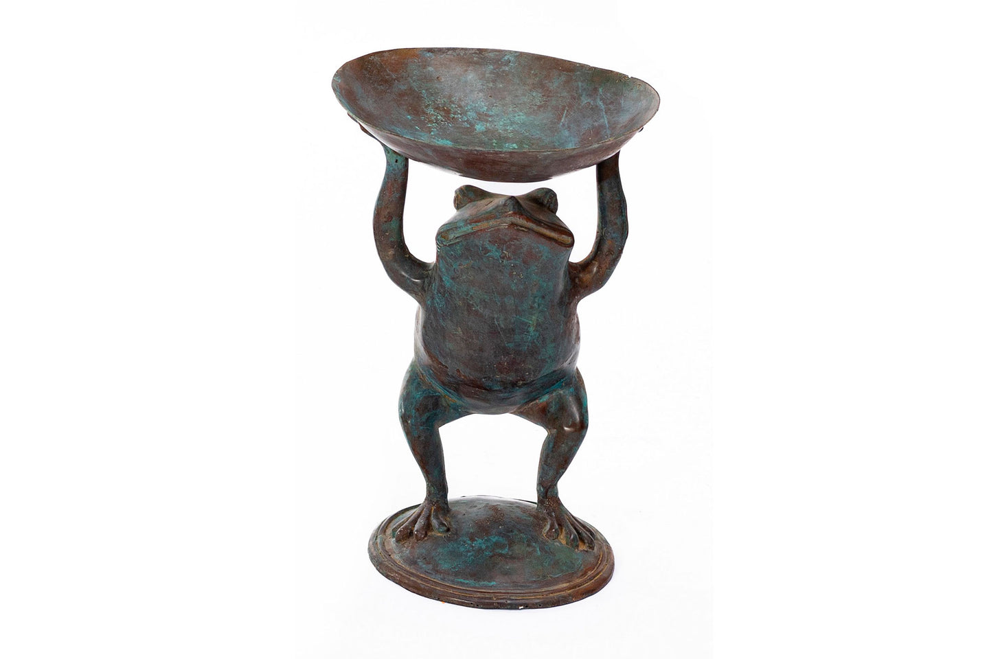 Sapo con bandeja parado jett. Pieza elaborado en bronce.