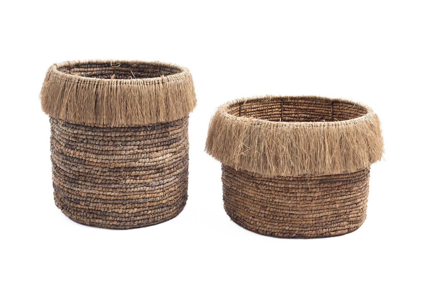 Canasto c/pls corto nat d45 x a34 kanu. Canasto con estructura en aluminio, tejido en cáscara de banano.