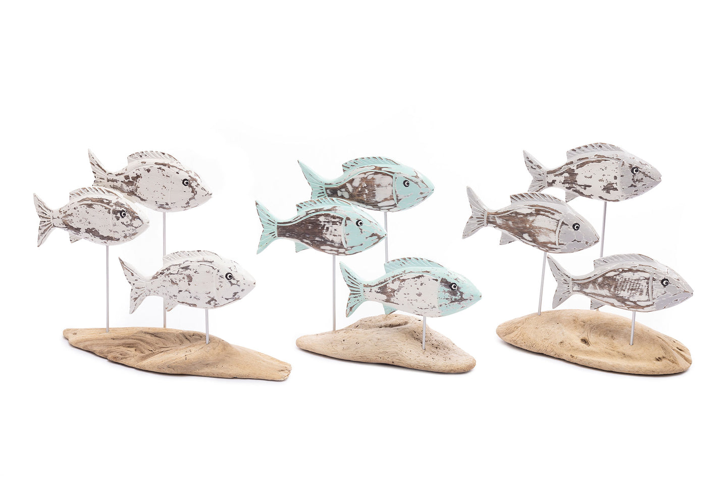 Panel peces x 3 aguamarina kawanan. Pieza elaborada en madera tallada.