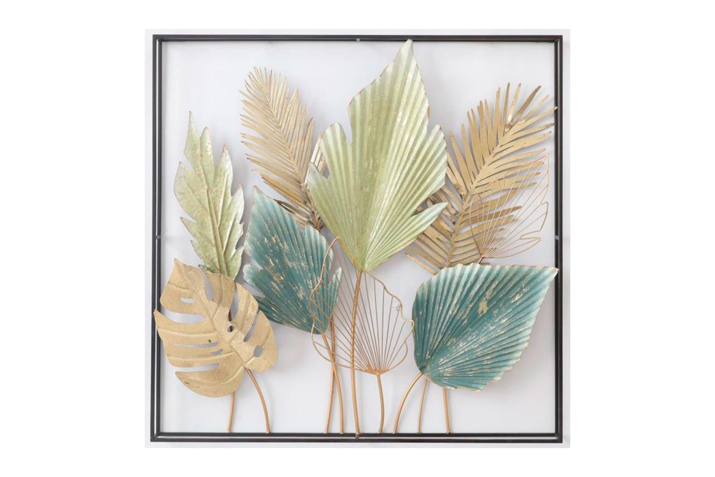 Decorativo de pared hojas 91 x 91 kirana. Pieza elaborada en aluminio.