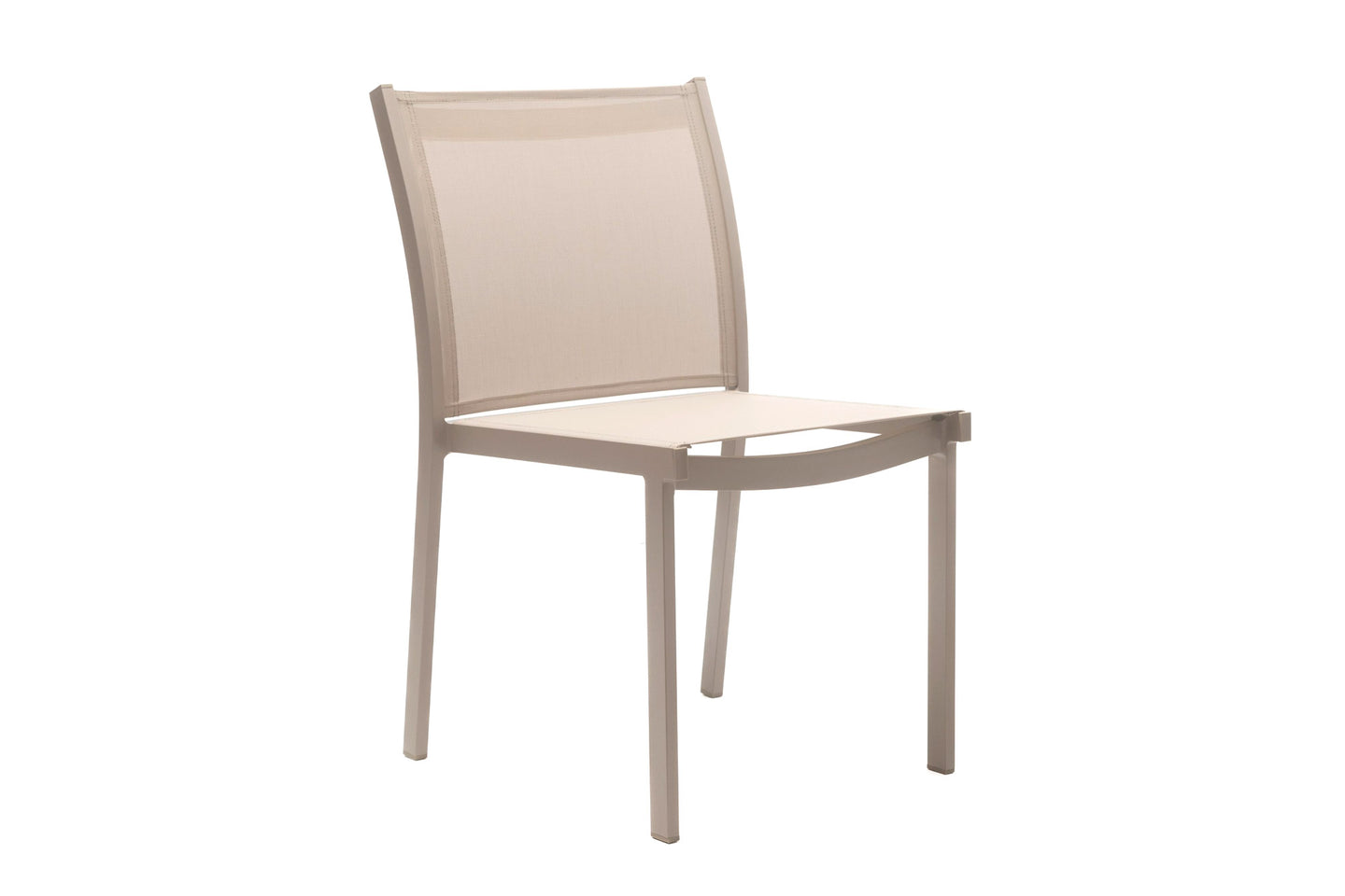 Silla comedor sin brazos khaki kotka. Estructura en aluminio, tejido en textileno.