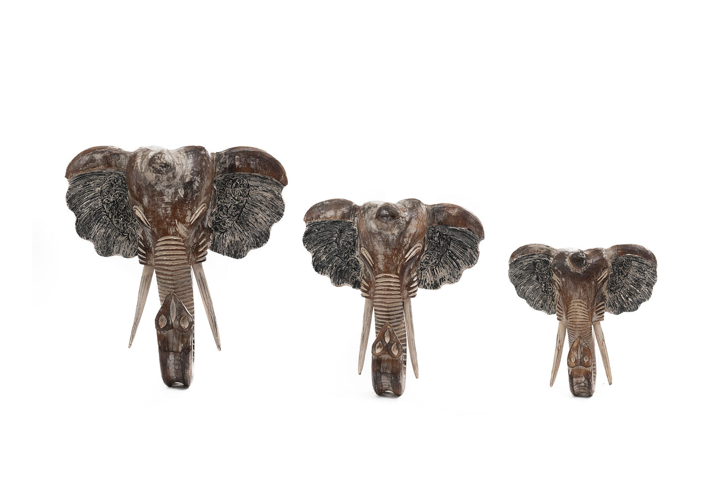 Cabeza elefante pared l verde lemak. Pieza elaborada en madera tallada.