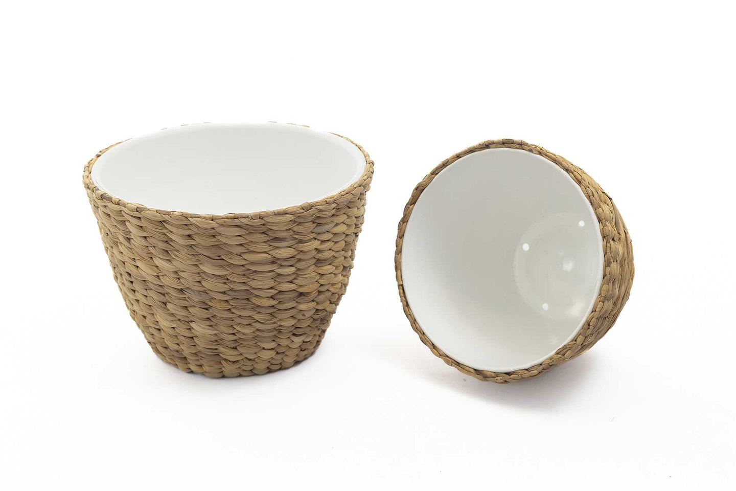 Matera tejida grande d35 x a22 lena. Matera tejida en cáscara de banano, con interior plástico.