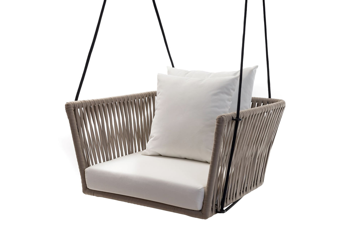 Columpio 1pt beige intemp lisboa. Estructura en aluminio, tejido en lazo sintético. Cojínería elaborada en tela para uso exterior.