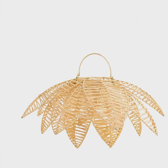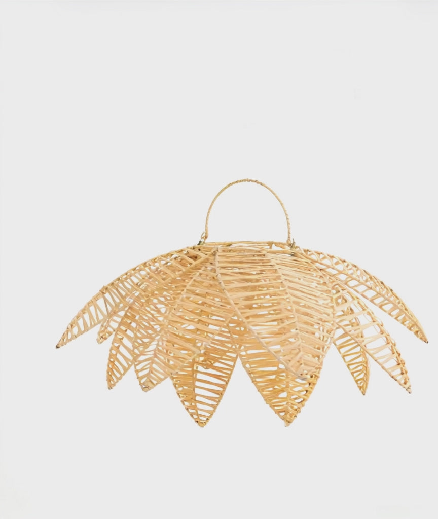 Lámpara colgante d60 loto. Lámpara con estructura en aluminio, tejida en cáscara de rattan.