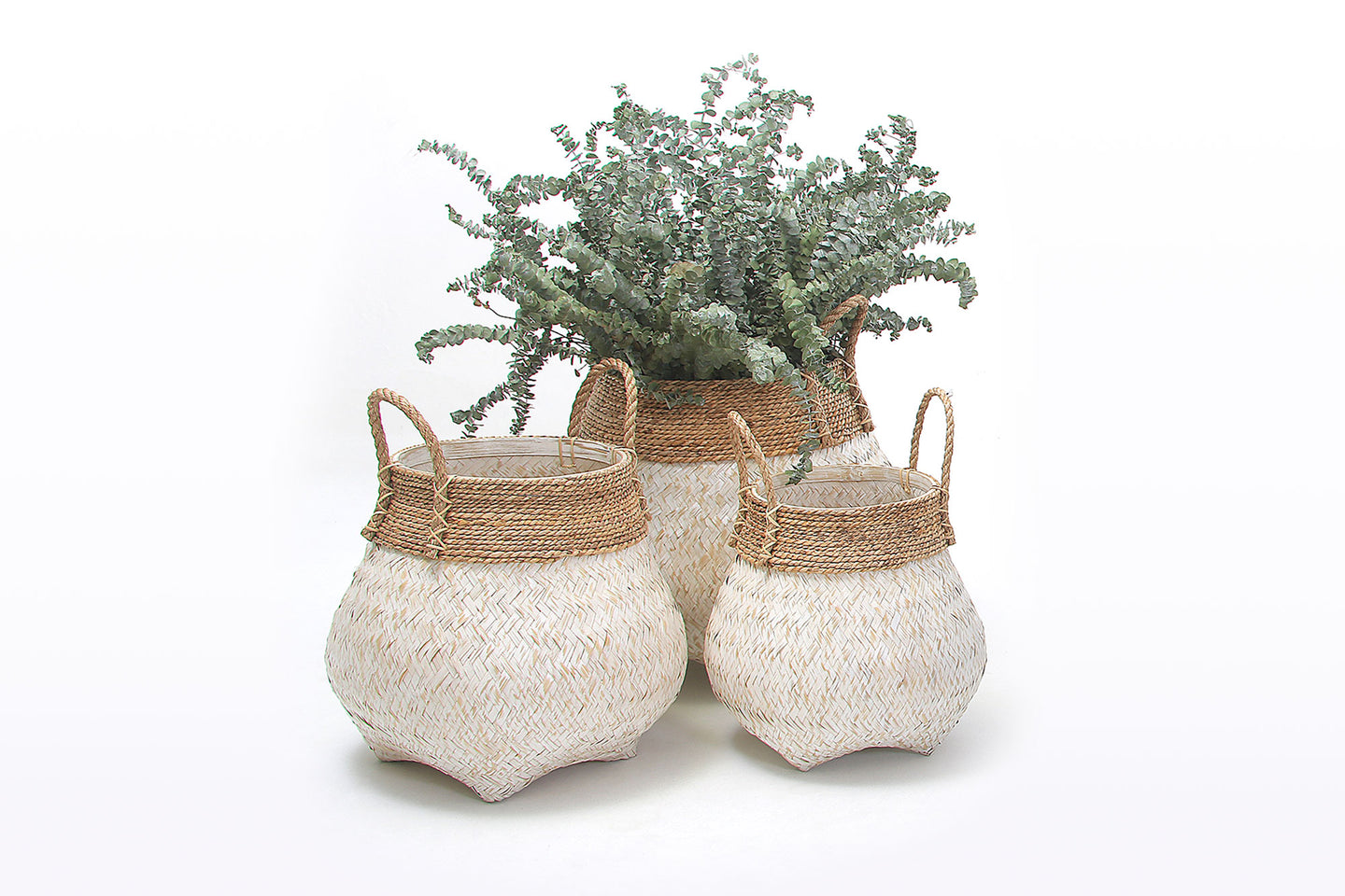 Canasto c/agarr blanco l lumpur. Canasto elaborado en rattan Tejido superior y agarraderas en cabuya náutica.