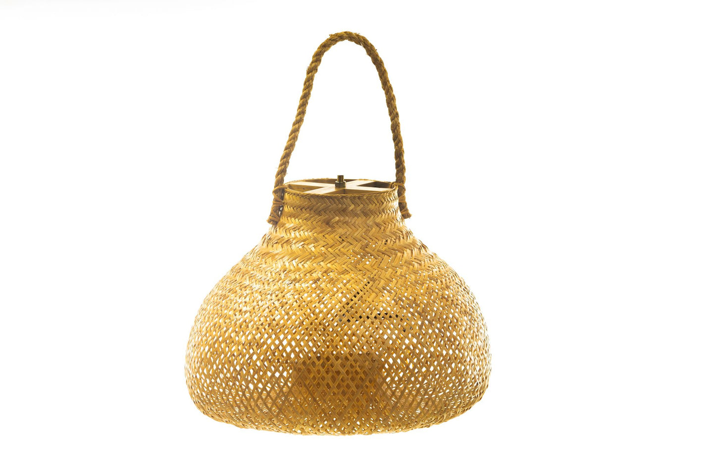 Lámpara colgante red d40a31 luzon. Estructura y tejido en cáscara de rattan.