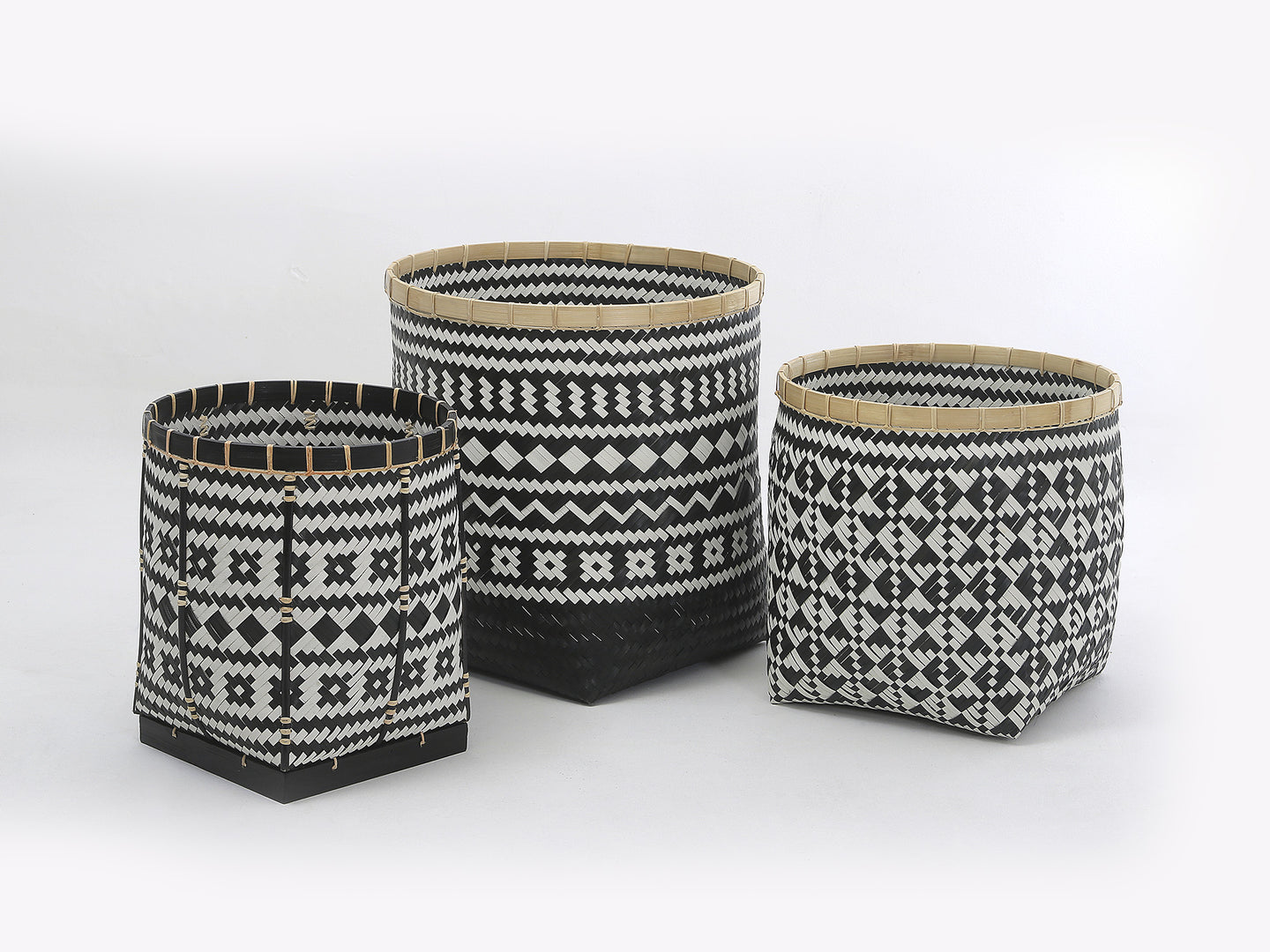 Canasto b/n l maran. Tejido en rattan sintético y rattan natural, detalles en bambú.