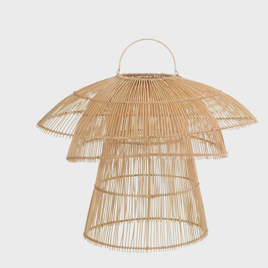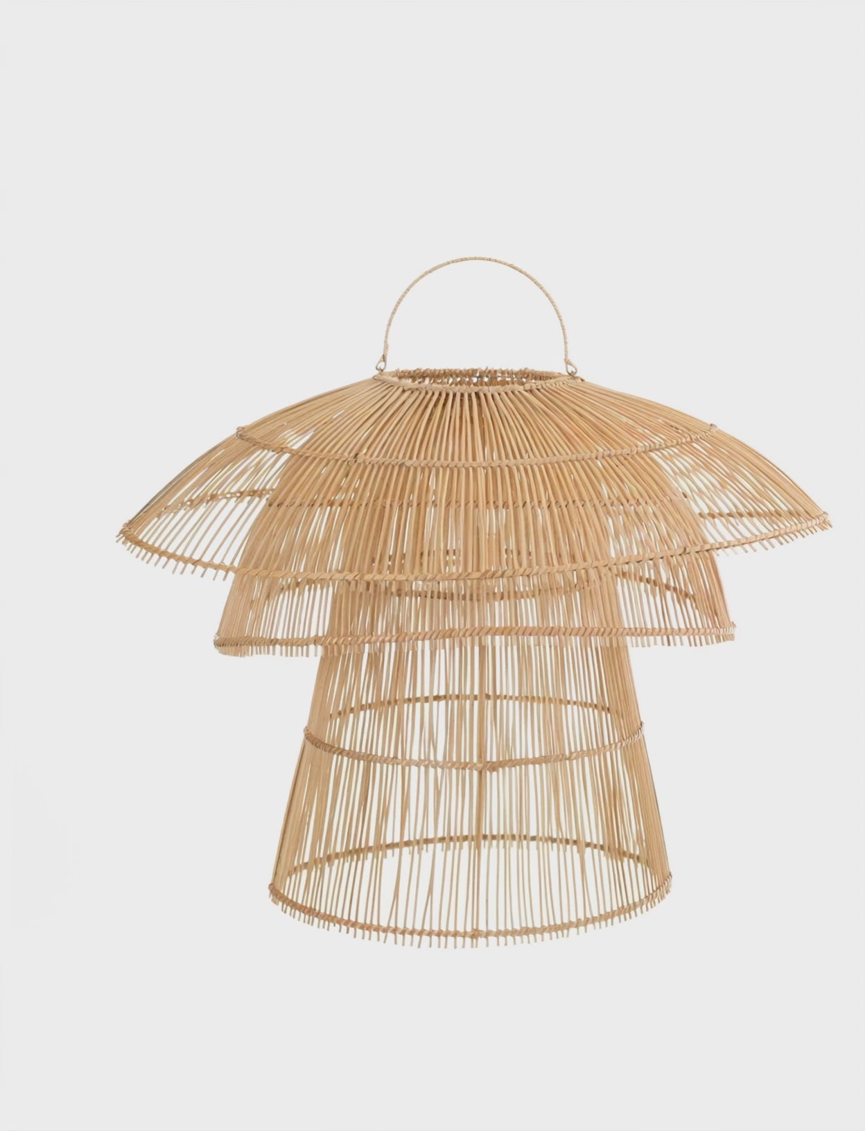 Lámpara techo d60xa50 medusa II. Lámpara con estructura en aluminio, tejida en vara de rattan.