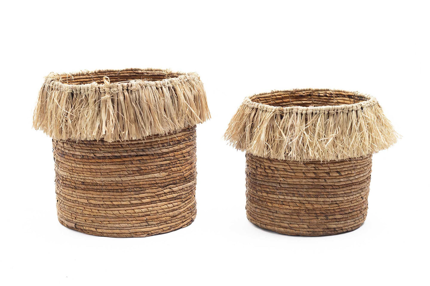 Canasto c/pls grd nat nirek. Canasto con estructura en aluminio, tejido en cáscara de banano.