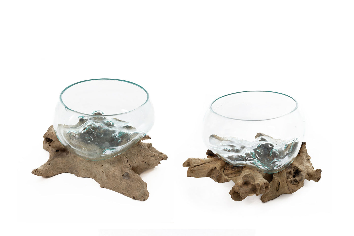 Burbuja de vidrio plana 20cm piscis. Pieza elaborada en vidrio soplado y base en madera.
