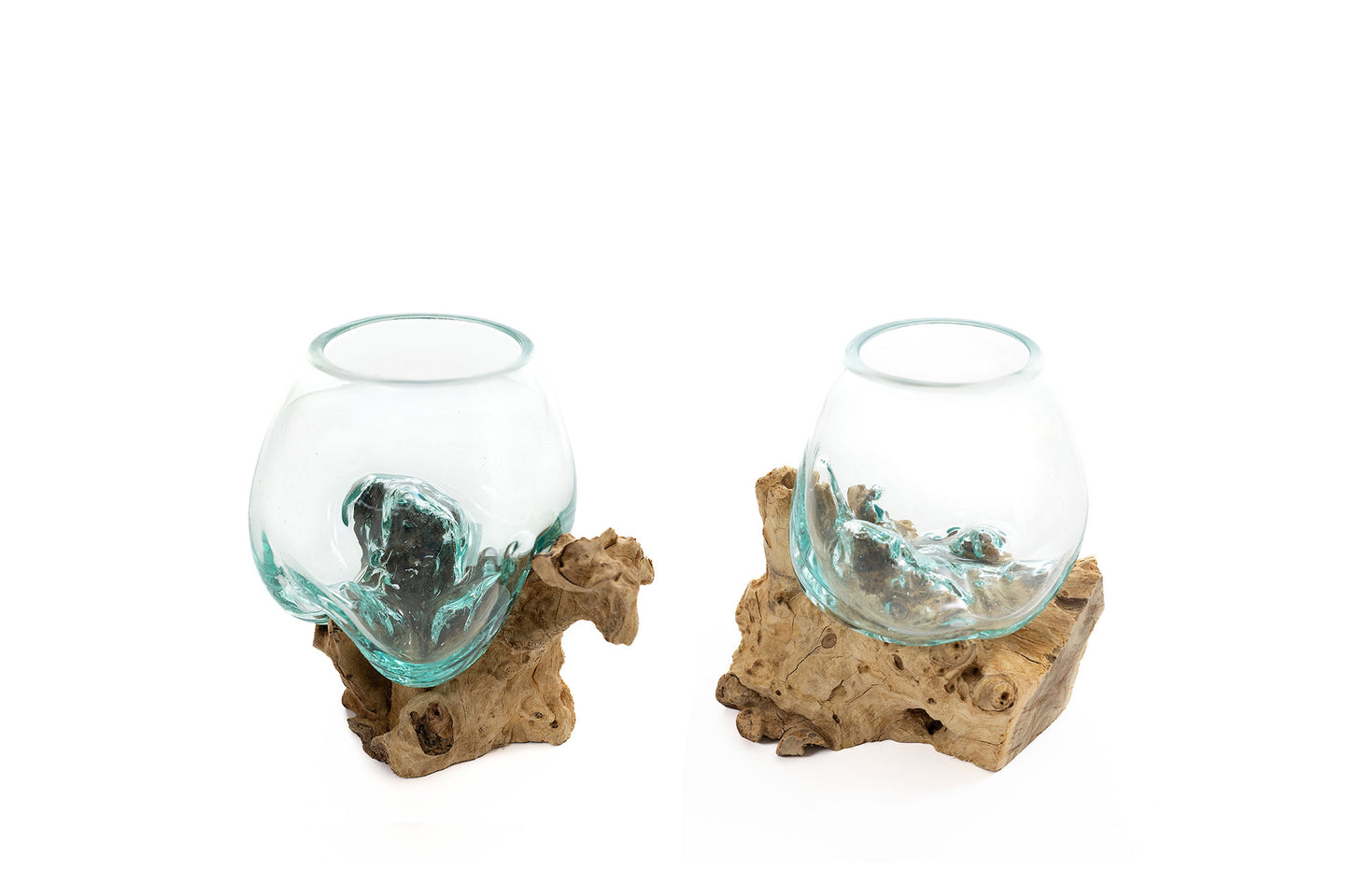 Burbuja de vidrio xs 15cm piscis. Pieza elaborada en vidrio soplado y base en madera.