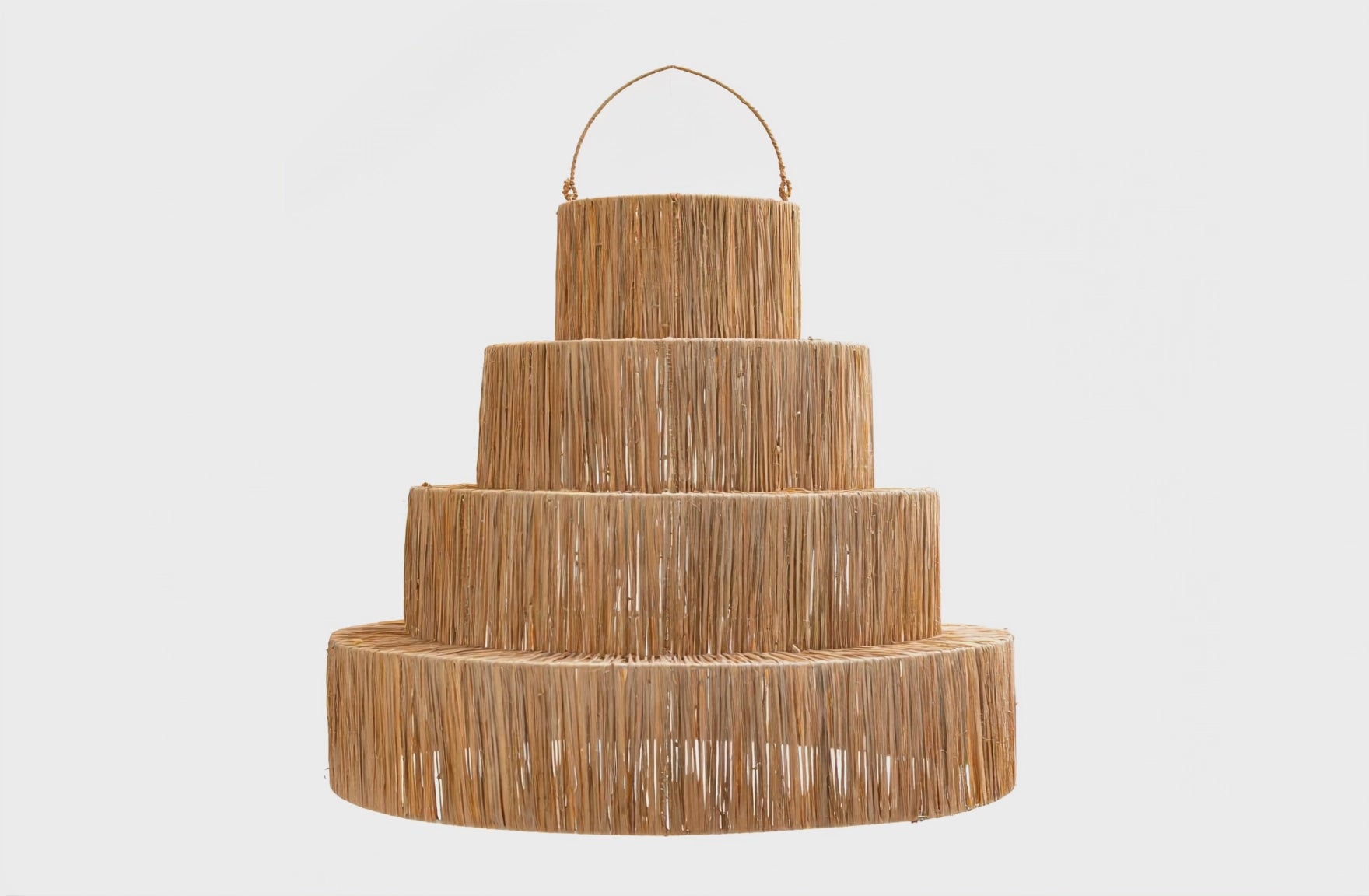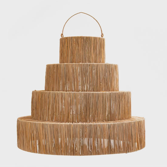 Lámpara de techo d70xa60 raksha. Estructura en aluminio, tejido en rafia.