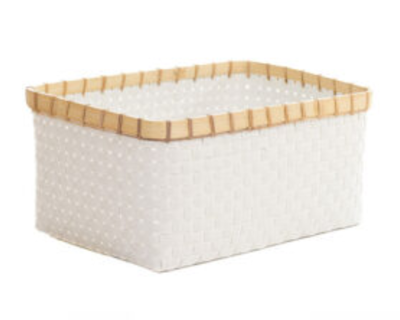 Canasto rect blc s rashi. Canasto tejido en rattan sintético, detalles en bambú.