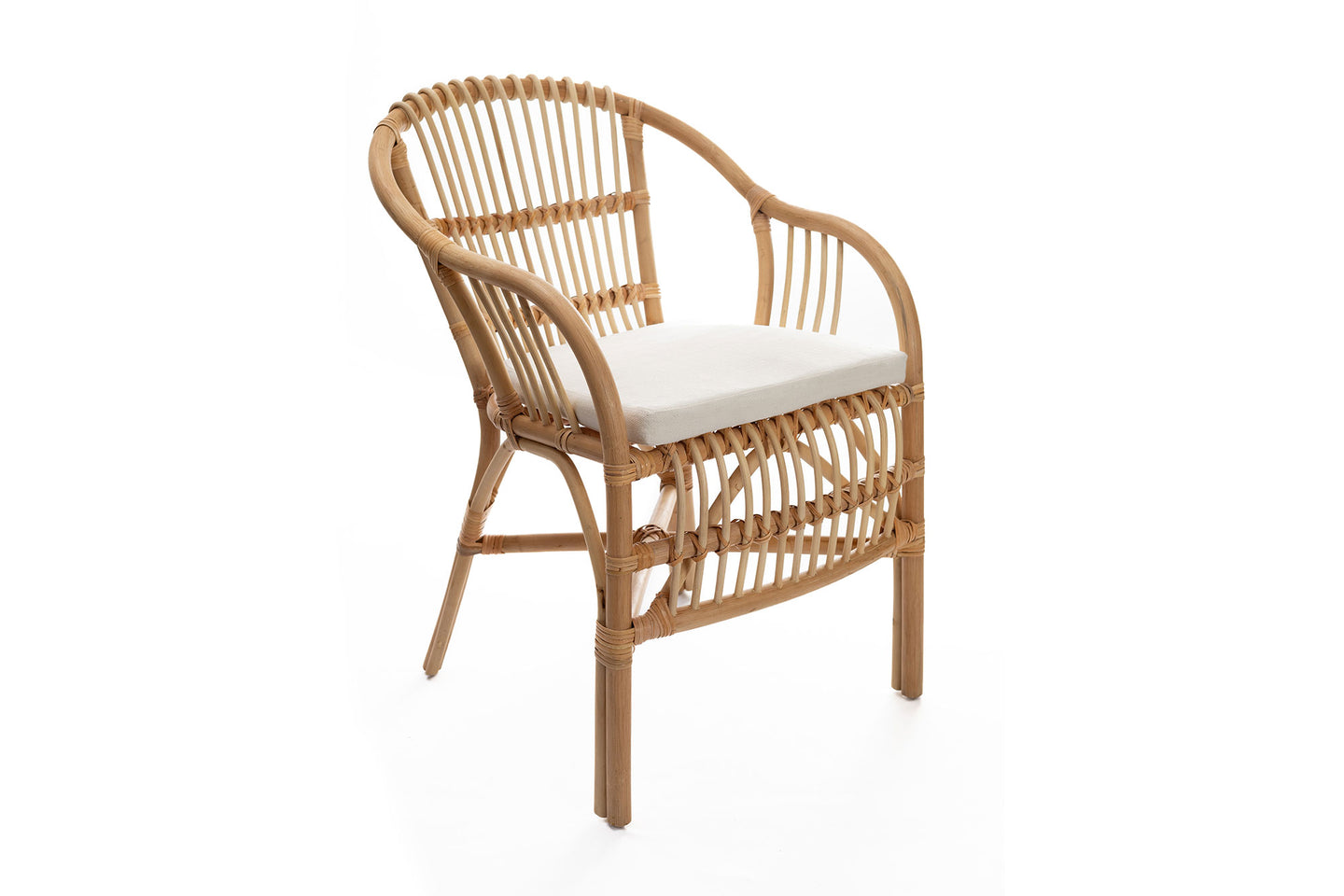 Silla ocasional con brazos nat reva. Estructura y tejido en vara de rattan.