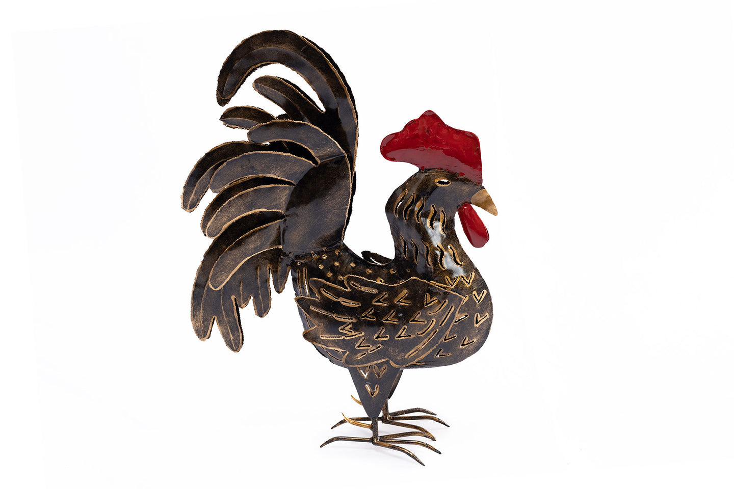 Gallo metálico 50 cm robin. Decorativo elaborado en aluminio.