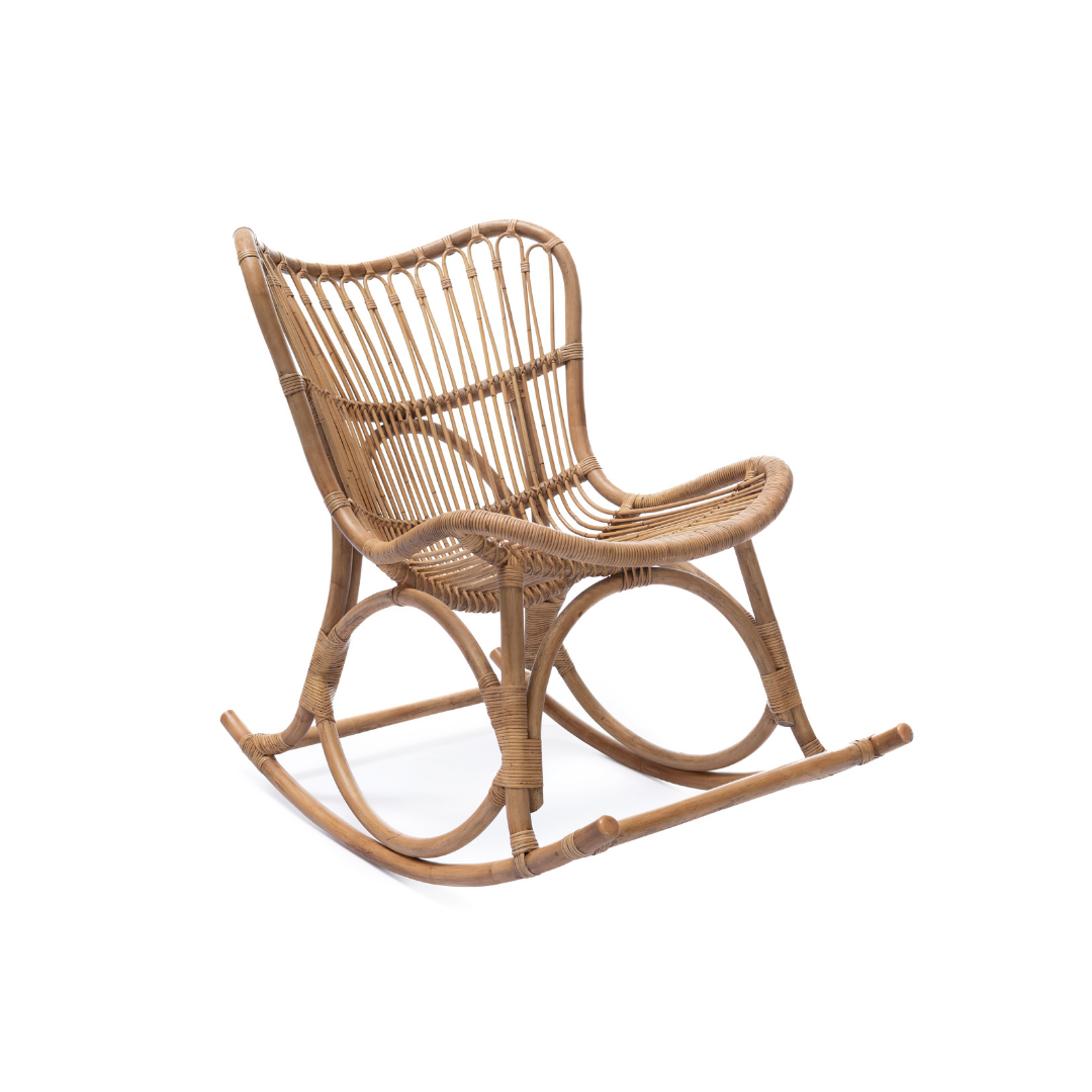 Silla mecedora color natural Selene. Estructura y tejido en liana de rattan natural.